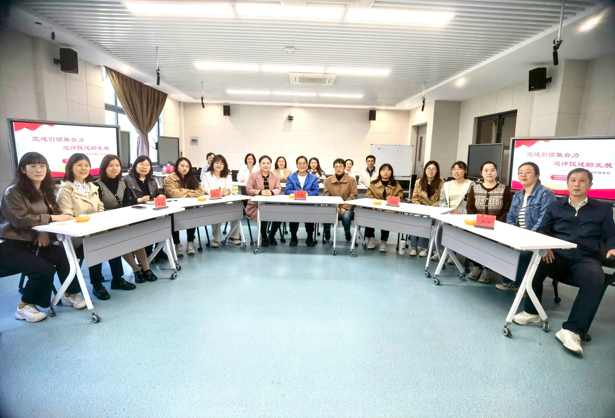 为牢固树立“以生为本,追求卓越”的质保理念,切实做到以评促建、以评促改、以评促管、以评促强,进一步营造人人关心评估、人人了解评估、人人参与评估的浓厚氛围,机关财务处党支部以新一轮本科教育教学审核评估为契机,4月24日下午在文华楼205室开展“党建引领聚合力 迎评促建助发展”主题党日活动。活动由党支部书记刘丽主持,全体党员和职工参加。