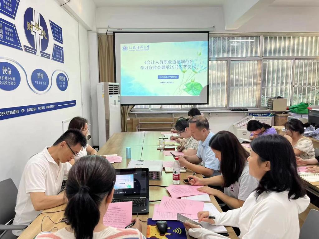 为进一步提升本次红色教育效果,支部随即举办了《会计人员职业道德规范》学习宣传会暨承诺书签署仪式。在认真观看了会计职业道德宣传视频后,大家紧扣“三坚三守”主题,结合各自岗位实际,围绕 “坚持诚信,守法奉公;坚持准则,守责敬业;坚持学习,守正创新” 为主要内容的职业道德规范,深入交流学习体会,全体同志郑重签署了《会计人员职业道德规范承诺书》。